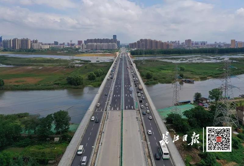 6月6日,武漢北大門——岱黃高速府河大橋綜合整治提升工程全部完工,新建橋梁連同老橋(老橋兩側(cè)各加寬兩車道)形成雙向八車道,當(dāng)日15時(shí)全面對(duì)社會(huì)開(kāi)放。