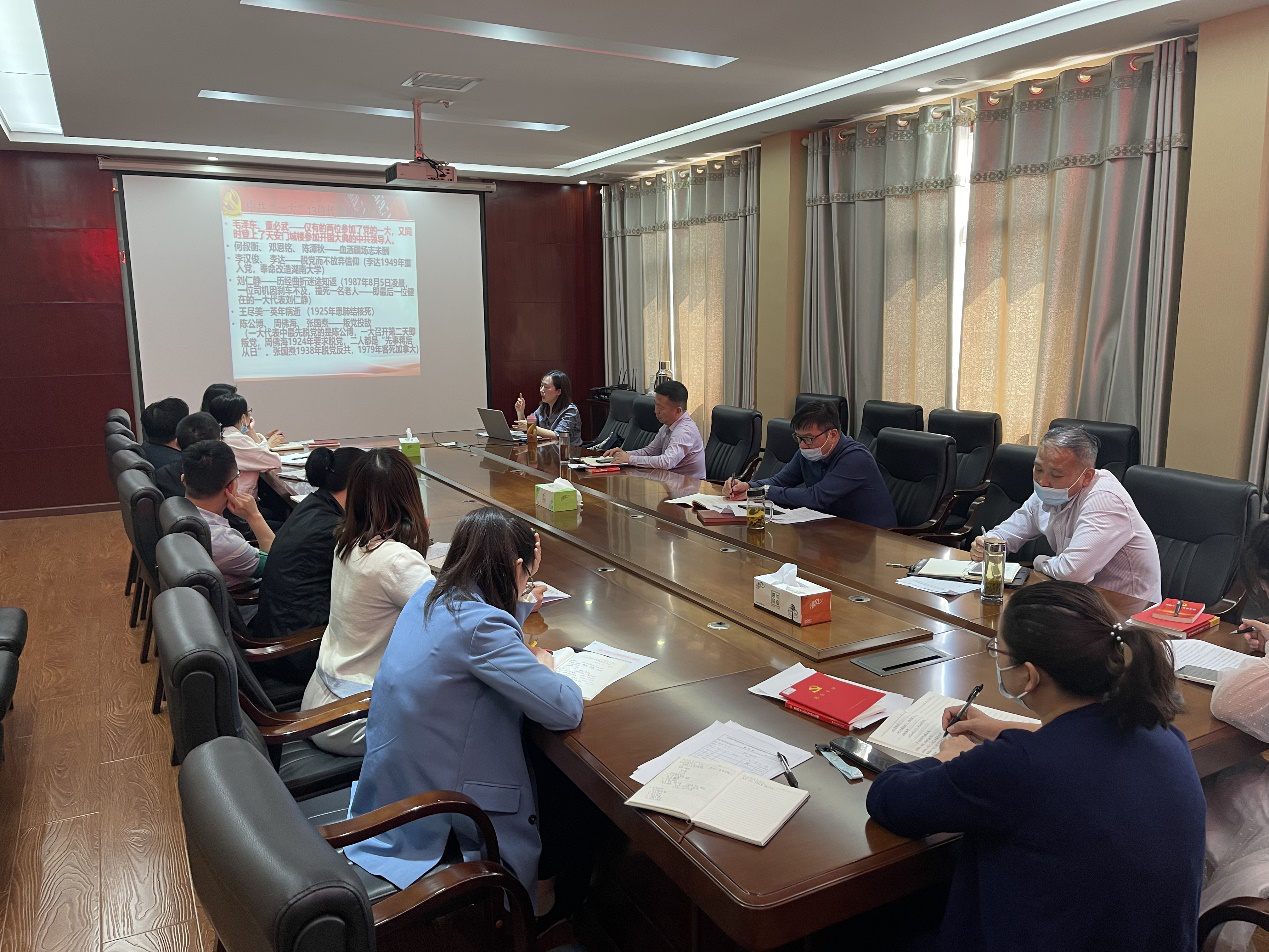 為貫徹落實(shí)區(qū)委區(qū)政府黨史教育實(shí)施方案,進(jìn)一步開展好黨史學(xué)習(xí)教育,樹立正確黨史觀,傳承紅色基因,凝聚奮斗力量,5月17日上午,武漢市木蘭文化旅游投資發(fā)展有限公司邀請區(qū)委黨校彭澎老師以《共產(chǎn)黨百年歷程》為主題,為公司全體黨員、入黨積極分子、部門負(fù)責(zé)人進(jìn)行了一次內(nèi)容豐富、意義深刻的黨史宣講。